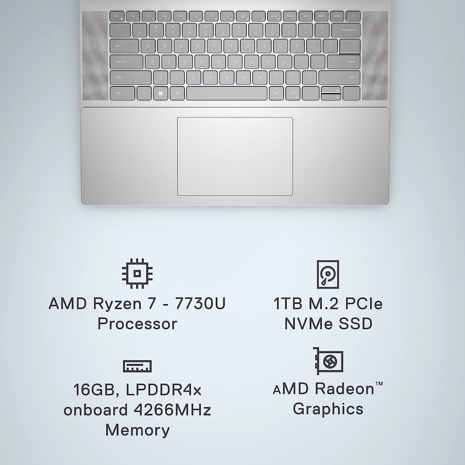 Ноутбук Dell Inspiron 5635 16" FHD+ WVA AG, AMD R7-7730U, 16GB, F1TB, UMA, Win11H, сріблястий