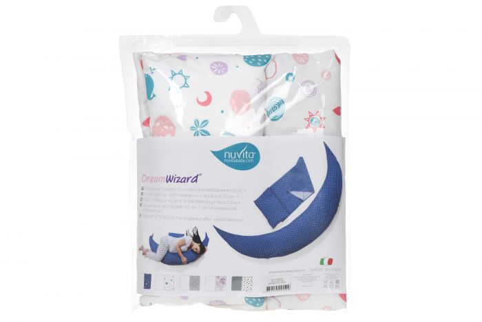 Наволочка і міні-подушка білого кольору з абстрактними візерунками від Nuvita, що чудово підходить до подушки для вагітних DreamWizard 10 в 1 – це найкращий тандем для майбутньої мами. Матеріал наволочки відповідає стандарту Oeko-tex 100 і не містить шкідливих хімічних речовин, тому ідеально підходить для новонароджених немовлят. Набір аксесуарів розроблений та виготовлений в Італії, а у поєднанні з подушкою відмінно підходить для покращення стану у ногах і комфортного відпочинку.