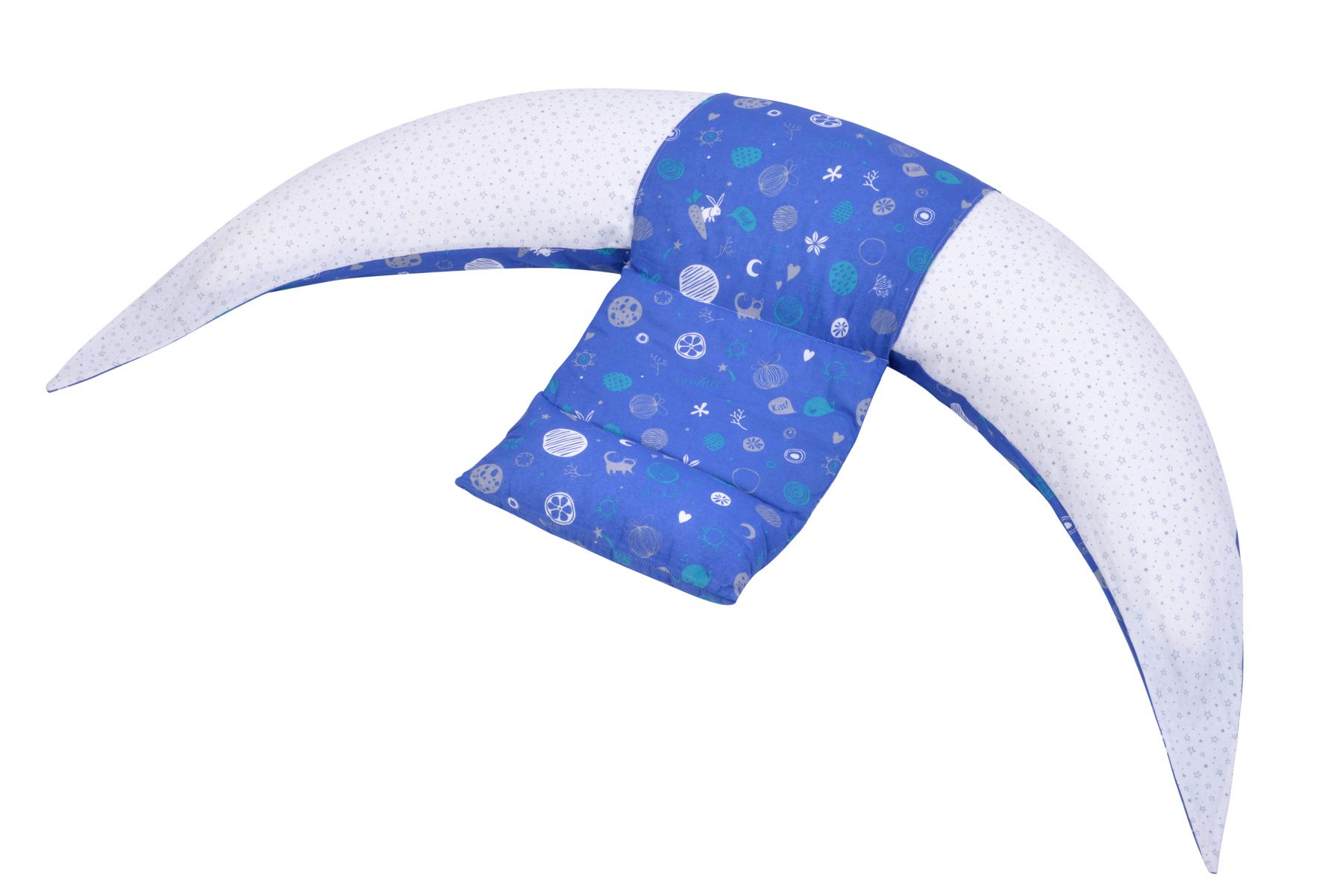 Набір аксесуарів для подушки DreamWizard складається з наволочки та міні-подушки синього кольору з абстрактними елементами. Комплект ідеально підходить до подушки для вагітних DreamWizard 10 в 1. Матеріал наволочки – найкращий для контакту з дитячою шкірою, адже він відповідає стандарту Oeko-tex 100 та не містить шкідливих хімічних речовин. Підходить для малюків з самого народження.