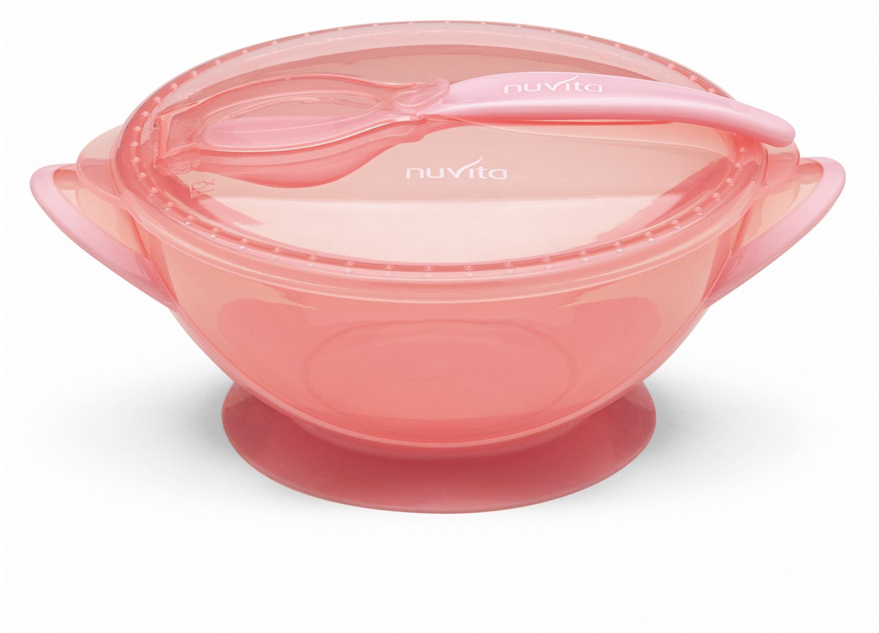 Набір для годування дорожній Nuvita COOL 6м + NV1421COOLPINK рожевого кольору складається з глибокої тарілки з кришкою і ложечкою і підійде для використання і вдома, і в подорожі. Завдяки прогумованій основи-присоски тарілочка надійно фіксується на гладкій поверхні, а спеціальний відсік в кришці дозволить ложці не загубитися і завжди зберігатися в чистоті. Ергономічна форма ложечки спеціально розроблена для зручності у використанні дитячими ручками.