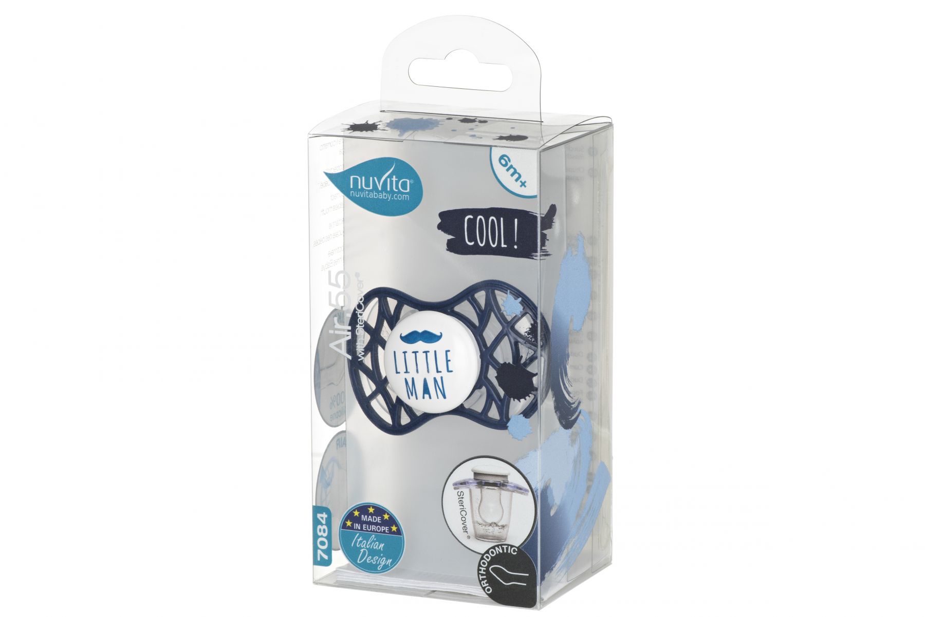 Пустушка ортодонтична Nuvita NV7084 Air55 Cool 6m+ "LITTLE MAN" темно-синя