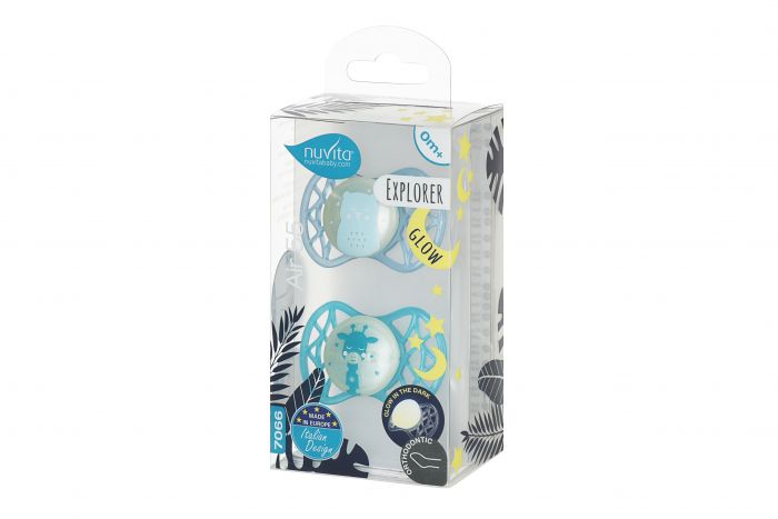 Пустушка Nuvita NV7066 Air55 Explorer ортодонтична 0m+, світиться у темряві (ведмідь, жираф) 2шт