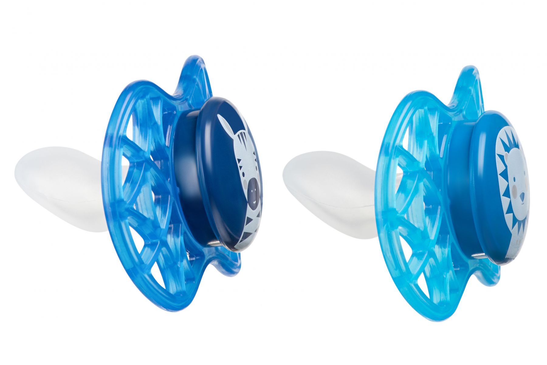 Пустушка силіконова Nuvita серії Air55 Explorer (зебра, лев) ортодонтична від 6 місяців 2шт NV7086M. Ортодонтична форма для природного розвитку неба. Полегшена і вентильована форма пластини на 55% складається з отворів, перешкоджаючи скупченню слини в області навколо рота і подразнення шкіри. Матеріал: силікон і пластик без Бісфенол А та інших шкідливих речовин.