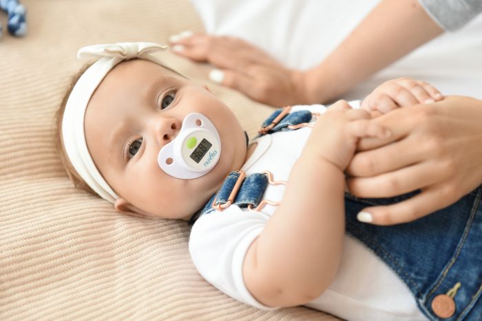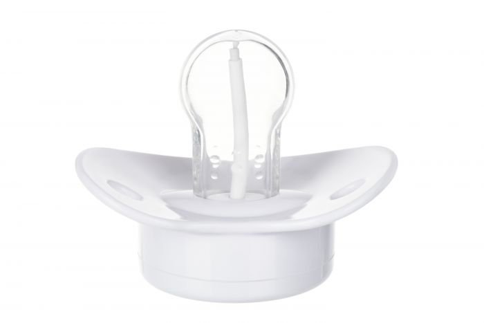 Пустушка-термометр білого кольору від Nuvita абсолютний «must have» для кожної мами. Завдяки поєднанню пустушки та термометра мама завжди зможе контролювати температуру свого малюка без зайвих турбот та дискомфорту. Симетрична форма пустушки робить її зручною для малюка, а користуватися нею можна з самого народження. Пустушка-термометр працює за рахунок вбудованої батарейки. Термін дії батарейки складає 1000 циклів вимірювання температури. Пустушка виготовлена з силікону та пластику. Не містить бісфенолу А.