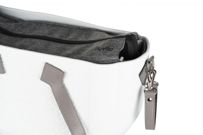 Сумка Nuvita MyMia білий корпус/сіра підкладка /сірі шкіряні ручки, бокові фіксатори, ремені на візок