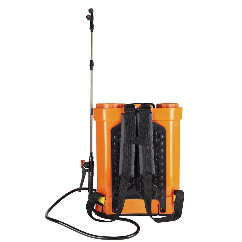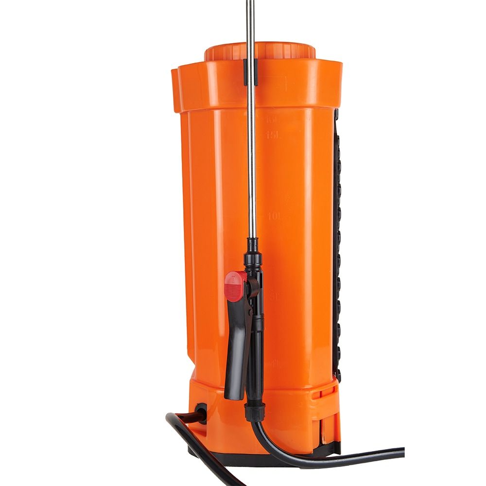 Додатково:ергономічна ручка, спусковий гачок, що блокується, Телескопічна штанга, шкала ємності рідини, прозорий резервуар зі шкалою рівня рідини, регулювання струменя розпилення, плечовий ремінь для зручного носіння