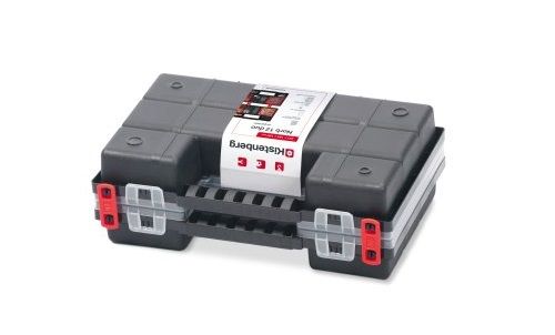 Компактний органайзер для інструментів Kistenberg NORB DUO 30 (28.7x18.6x10 см) із 12 знімними стаканчиками. Оснащений прозорою кришкою з поліпропілену для легкого огляду вмісту, міцними засувками та ергономічною ручкою для зручного транспортування. Корпус виготовлений із високоміцних полімерів, що гарантують довговічність і надійність.
