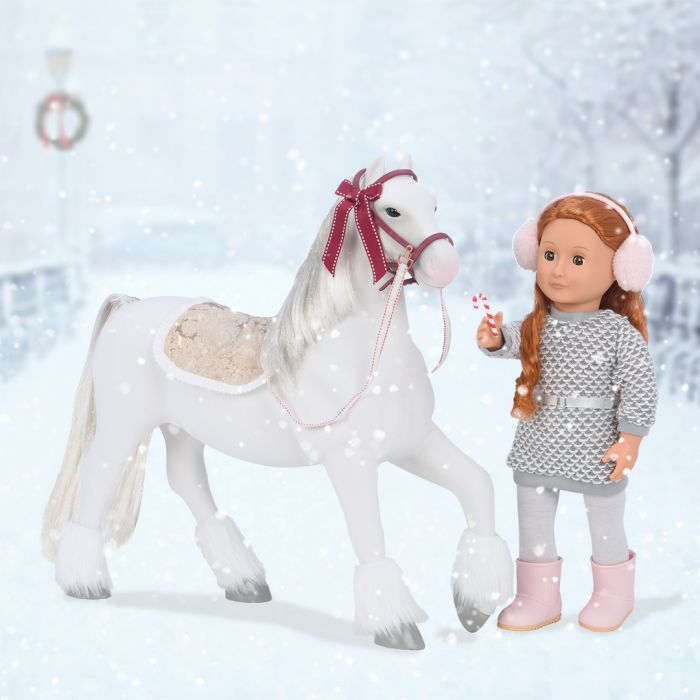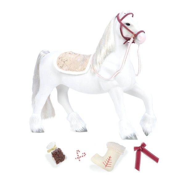 Біла Конячка з аксесуарами стане цікавим доповненням до іграшок Our Generation. Ляльки Our Generation - знатні цінительки верхової їзди, тому зазвичай мають справу з найкращими конячками. Клейдесдаль - жвавий кінь, з білосніжною гривою і модними білими манжетами. Іграшка буде допомагати розвивати фантазію і сюжетно-рольову гру у дітей, естетичний смак, допоможе оволодіти новими навичками.