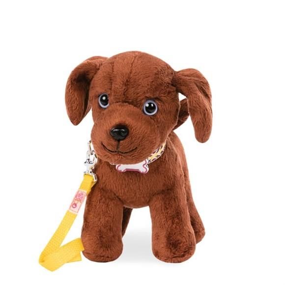М'яка плюшева іграшка-щеня для ляльки Our Generation зробить гру більш цікавою та захоплюючою. Фігурка цуценя - Лабрадор . Повідець і нашийник в комплекті. Іграшка буде допомагати розвивати фантазію і сюжетно-рольову гру у дітей.