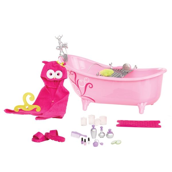 Ігровий набір "Приймаємо ванну" з аксесуарами стане цікавим і корисним доповненням до іграшок Our Generation. Набір складається з 20 елементів, завдяки яким можна відтворити щоденний побут. Головною особливістю є ванна рожевого кольору з сріблястим змішувачем, а велика кількість аксесуарів (халат, мочалка, тапочки, килимок, лак, духи, крем) роблять гру більш захоплюючою. Іграшка буде допомагати розвивати фантазію і сюжетно-рольову гру у дітей, естетичний смак, допоможе оволодіти новими навичками.