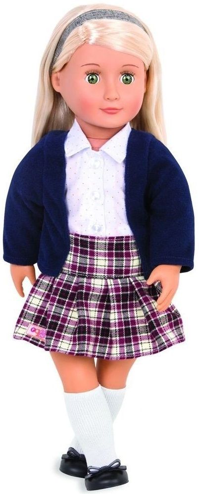 Симпатична білявка Емільєн просто обожнює навчатися, та на своєму прикладі доводить – навчання може та має бути цікавим. Вона вдягнена у стильну шкільну форму, а волосся прикрашає симпатична сіра смужка із сяючого матеріалу. Висота лялечки Емільєн 46 см. Увесь одяг виготовлений з якісного текстилю, та є абсолютно безпечним для малюка. Лялька чудово доповнить колекцію іграшок від Our Generation, а також відмінно поєднується з наборами аксесуарів бренда. Рекомендований вік: 3+.
