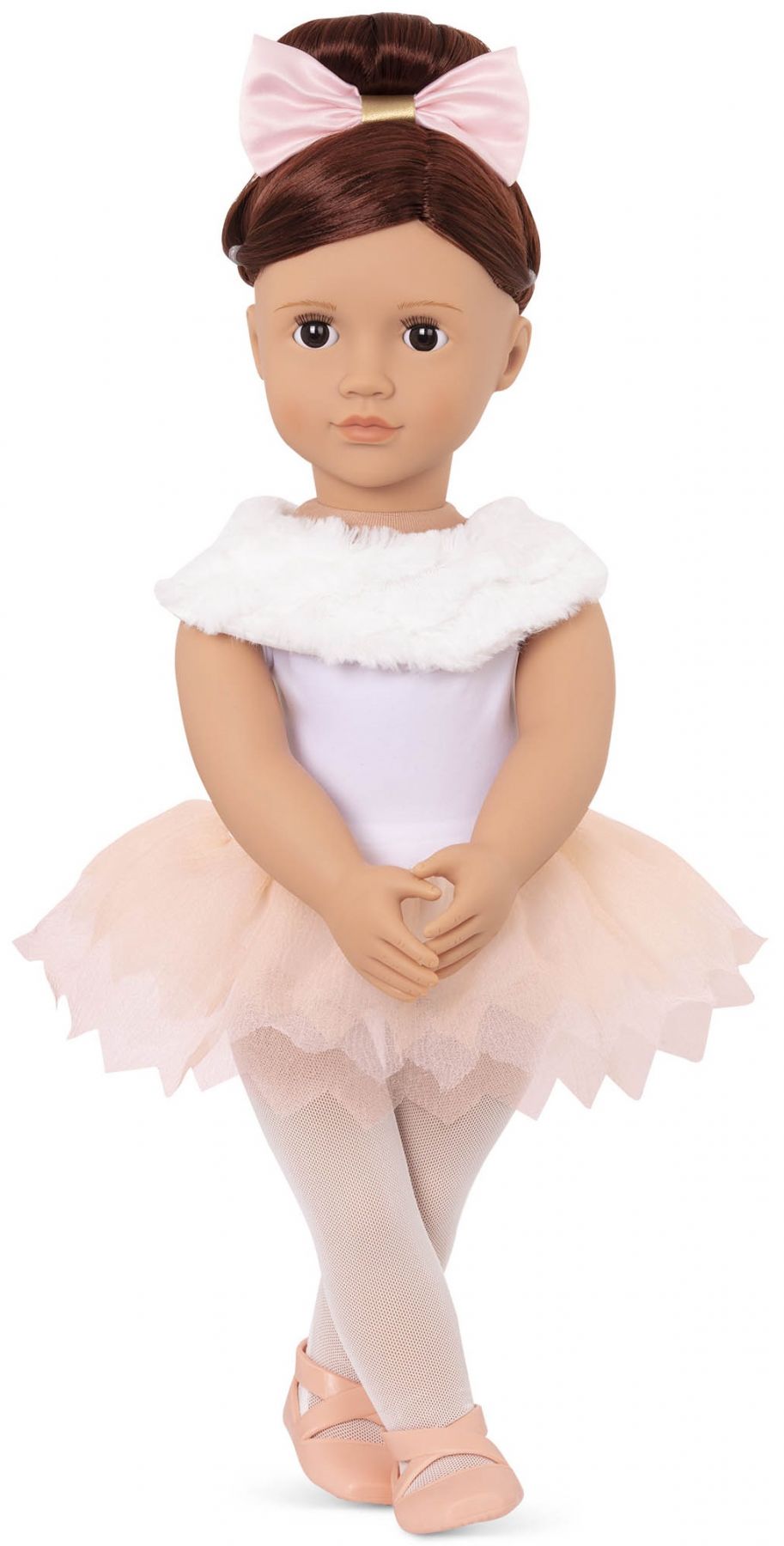 Кожен ранок артиста балету починається з уроку. Для підтримки фізичної форми та техніки – юна балерина Валенсія проводить декілька часів на тренуванні щодня. Лялька із оригінальної колекції Our Generation надзвичайно обожнює балет та вважає його своїм покликанням. Вона вдягнена у класичну балетну пачку, елегантну накидку на плечі, колготки, а її волосся прикрашає ніжний рожевий бантик а на ногах балетні пуанти. Увесь одяг виготовлений з якісного текстилю та є абсолютно безпечним для малюка. Валенсія чудово доповнить колекцію іграшок від Our Generation, а також відмінно поєднується з наборами аксесуарів бренда. Рекомендований вік: 3+.