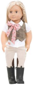 Ця симпатична кароока білявка з довгим волоссям – одна з ляльок Our Generation, що дуже любить коней та допоможе дитині подружитися з цими граційними тваринами. Лія вершниця, тому вона вдягнена у елегантну форму, яка чудово доповнюється симпатичним рожевим бантиком. Рахуючи, що коні тварини дуже стримані та граційні, Лія має дуже елегантний характер та аристократичні манери. Вона завжди чудово тримається у сідлі та ніколи не опускає рук. Граючи з лялькою, дитина вчиться загартовувати свій характер та впевнено триматися у будь-якій ситуації. Лялечка виготовлена з вінілу та має м’яке наповнення. Висота ляльки 46 см. Рекомендований вік : 3+.