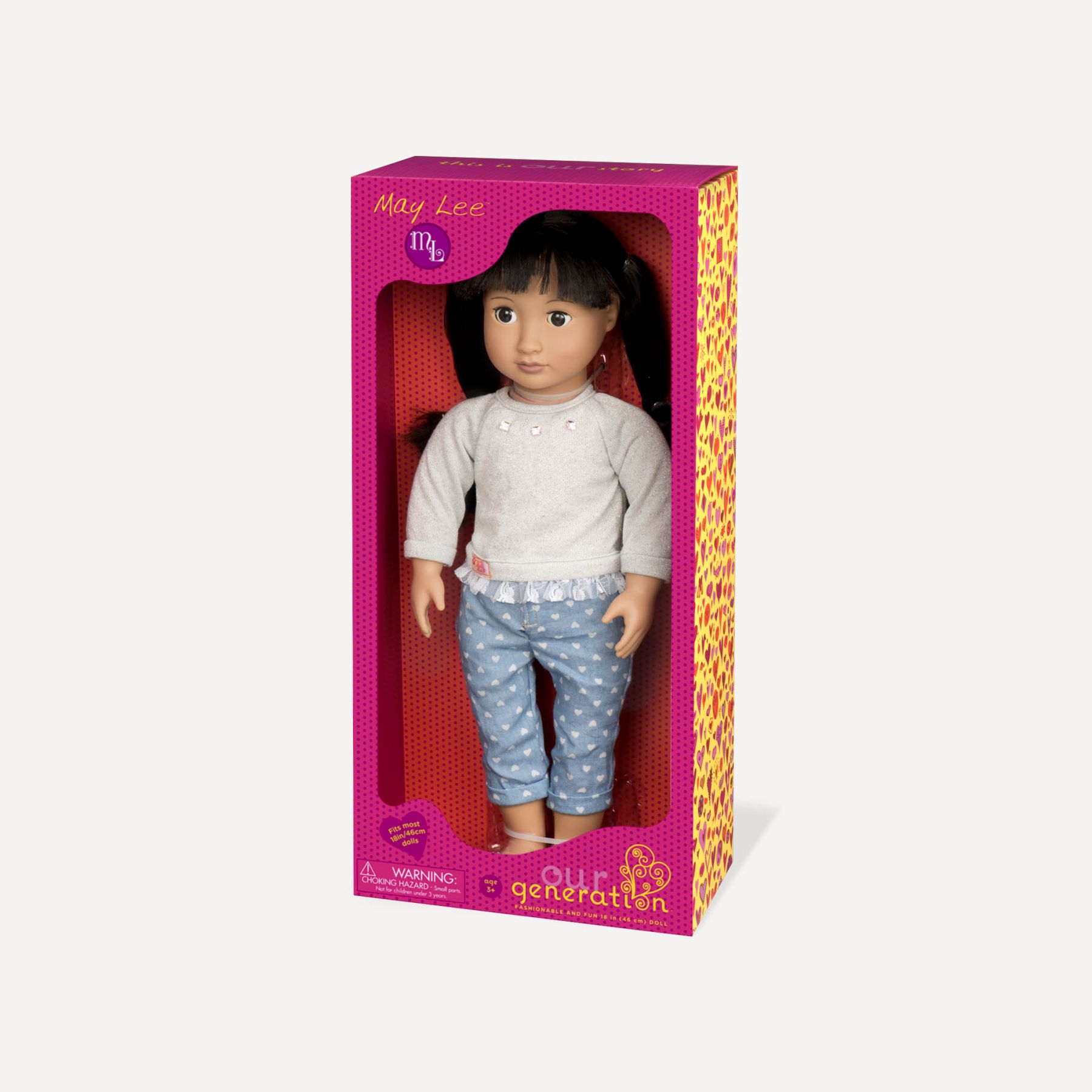 Лялька Мей Лі - одна з фантастичних ляльок Our Generation. Її образ доповнюють модні джинси. У ляльки розкішне волосся, яке можна укладати в різні зачіски і красиві карі очі з довгими чорними віями! Іграшка буде допомагати розвивати фантазію і сюжетно-рольову гру у дітей, естетичний смак, допоможе оволодіти новими навичками.