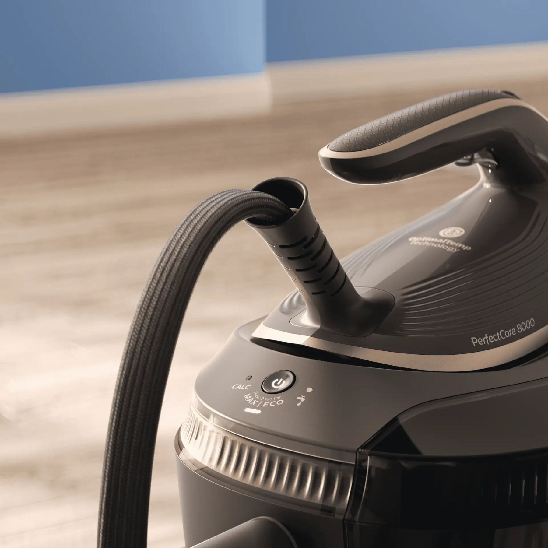 Парогенератор Philips PerfectCare 8000, 3120Вт, 1400мл, паровий удар -800гр, верт. відпарювання, нерж. сталь, чорний