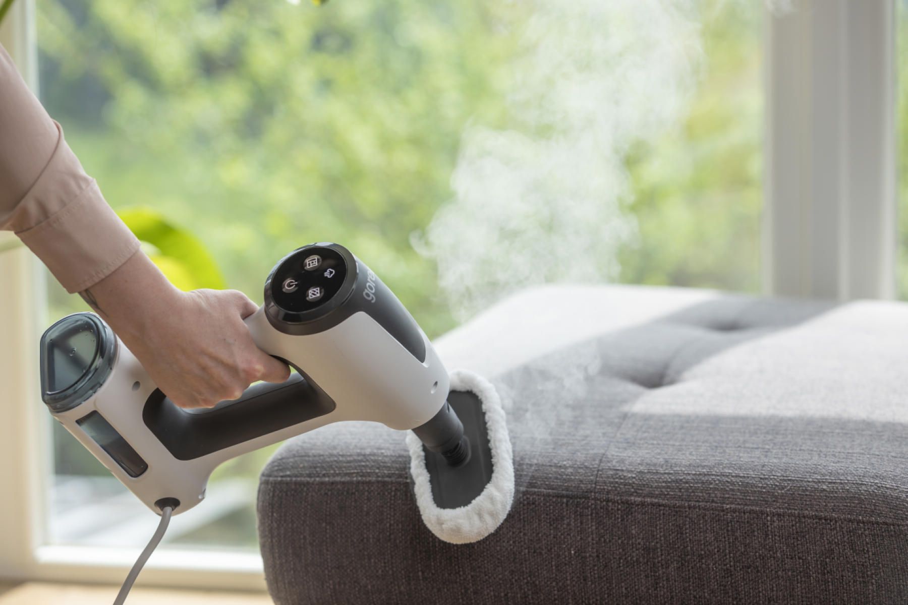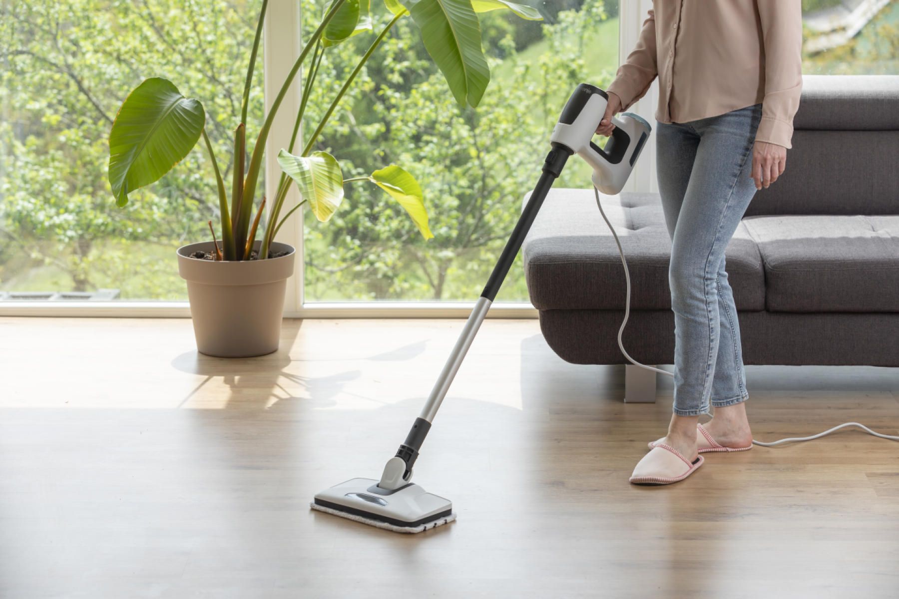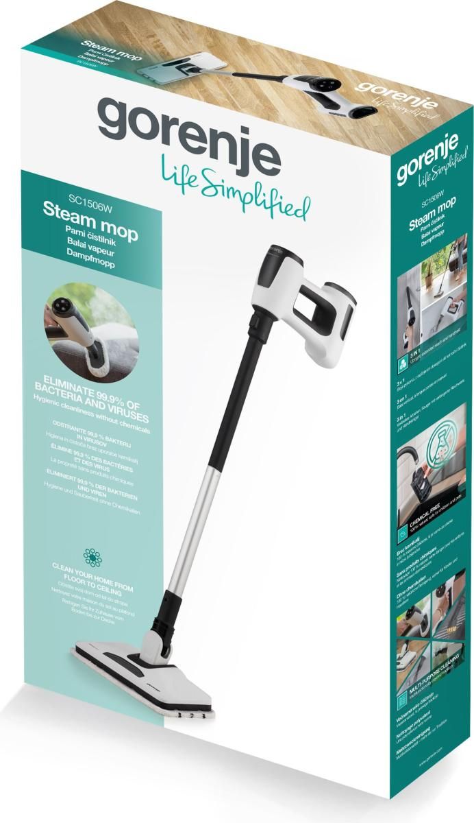 Пароочисник Gorenje SC1506W призначений для очищення підлоги гарячою парою без мийних засобів. Потужність 1500 Вт і тиск пари 0,2 бар дозволяють швидко розм’якшувати та видаляти забруднення. Резервуар на 400 мл і кабель довжиною 5 м роблять пристрій зручним для щоденного використання в квартирах чи будинках середнього розміру. Легка конструкція вагою 2,5 кг полегшує маневрування.