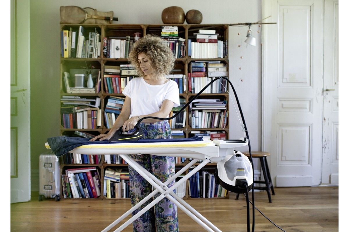 Karcher SI 4 EasyFix Iron – ефективне парове очищення та прасування. Прасувальна станція скорочує час у два рази завдяки паровій прасці та активній дошці з повітряною подушкою. Пароочисник усуває 99,999% вірусів і 99,99% бактерій без хімії, легко очищаючи плитку, варильну панель, витяжку та щілини. Насадка EasyFix з гнучким шарніром гарантує ідеальні результати, а система липучок дозволяє змінювати серветку без контакту з брудом.
