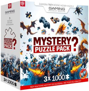 Пазл GoodLoot Mystery Puzzle Pack V1 — набір із трьох пазлів по 1000 елементів із ліцензованими ігровими мотивами. Кожен комплект містить різні дизайни, що зберігаються в одному тематичному боксі. Постери для орієнтації в зображенні полегшують процес складання. Формат набору дозволяє послідовно працювати з кожним пазлом окремо.