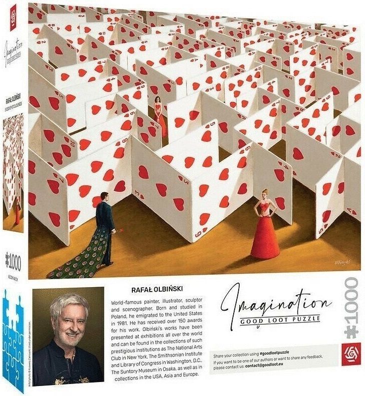 Пазл з ілюстрацією Rafal Olbinski «Захист надмірної педантичності», 1000 елементів. Рафал Ольбінський – всесвітньо відомий художник, ілюстратор, скульптор і сценограф. Він народився і навчався в Польщі, а в 1981 році емігрував до США. За свої роботи отримав понад 150 нагород. Роботи Ольбінського представлені на виставках по всьому світу і постійно знаходяться в колекціях таких престижних установ, як: Національний клуб мистецтв у Нью-Йорку, Смітсонівський інститут і Бібліотека Конгресу у Вашингтоні, Музей Санторі в Осаці та в колекціях в США, Азії та Європи.