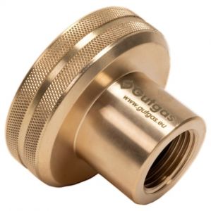 Перехідник Gutgas Ragasco для заправки газових балонів (код товару: GGA2003). Адаптер для газового балона виконаний із латуні. Це зроблено для того, щоб при частому використанні не псувалося різьблення на вентилі (запобігає злизуванню різьблення). Може застосовуватися як для заправки побутових балонів, так і для іншої техніки, де на вході встановлені вентилі із зовнішнім лівим різьбленням 21.8мм (за ГОСТом).