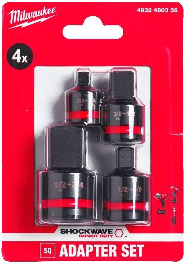 Перехідник Milwaukee, набір 4шт, 1/2"-3/4", 1/2"-3/8", 3/8"-1/2", 3/8"-1/4", для торцевих головок