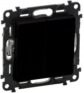 Перемикач 2-х клавішний Legrand Valena Life, 10AX, 250V, автоматичні клеми, матовий чорний