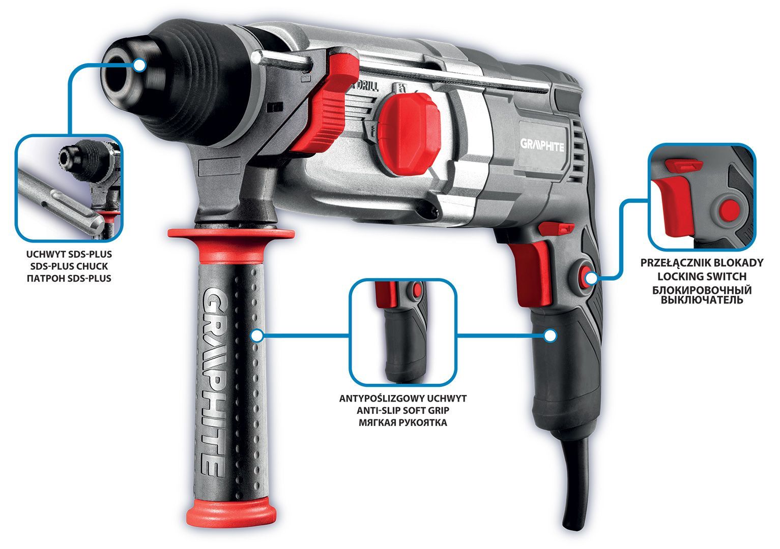 Перфоратор GRAPHITE SDS-plus 900Вт 3.4Дж кейс 6.1кг