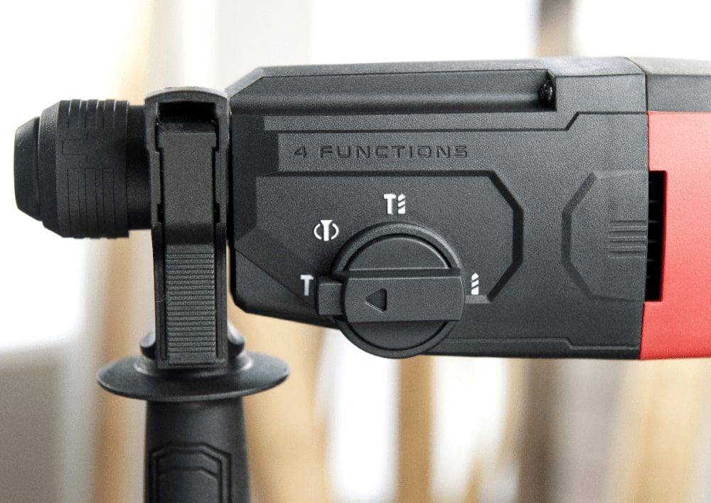 Пневматичний перфоратор з чотирма функціями Пневматичний перфоратор Skil 1770 з чотирма функціями оснащений потужним двигуном на 850 Вт, регулятором швидкості з попереднім встановленням і кнопкою-фіксатором для оптимального контролю свердління в бетоні до 26 мм. Він має ударну функцію для свердління в бетоні, функцію зупинки довбання для звичайного свердління та загвинчування, і функцію блокування обертання для виконання легких робіт з довбання. І нарешті, цей дриль дозволяє виконувати роботи з довбання з вільним обертанням.