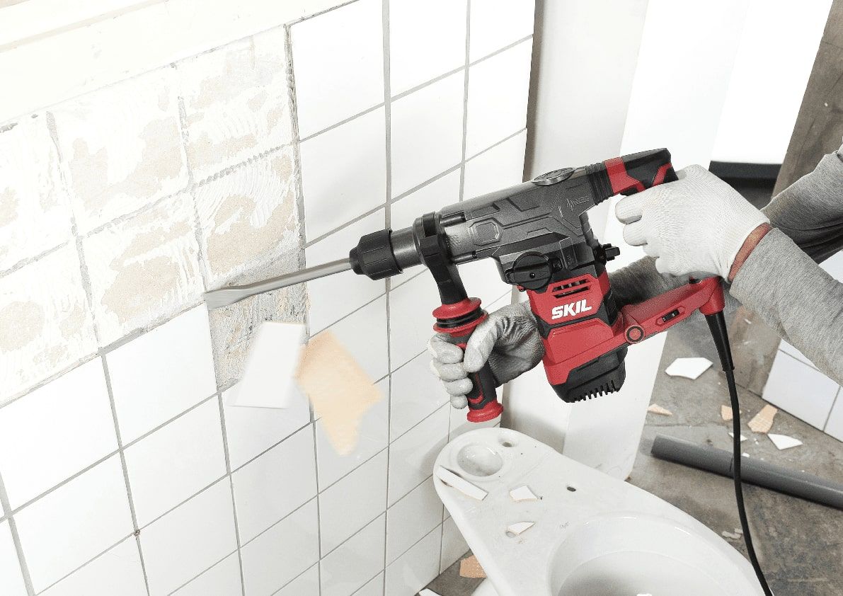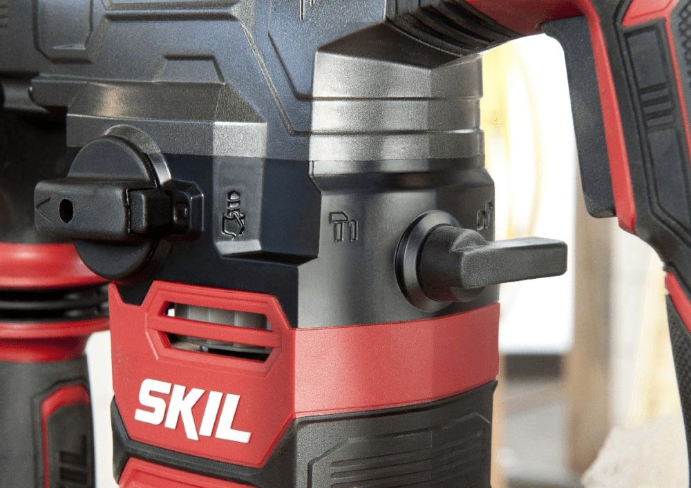 Пневматичний L-подібний перфоратор з трьома функціями. Пневматичний трифункціональний перфоратор SKIL 1781 має дуже потужний двигун на 1500 Вт і попереднє встановлення швидкості для оптимального керування. Він має ударну функцію для свердління в бетоні, функцію зупинки довбання для звичайного свердління і функцію блокування обертання для виконання робіт з довбання.