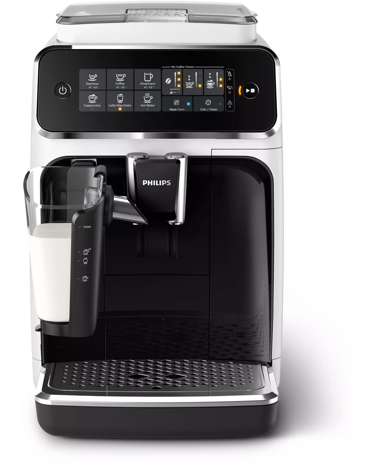 Комплектація:мірна ложка, тестова смужка для перевірки жорсткості води, фільтр AquaClean, кришка для зберігання LatteGo, трубка для жиру