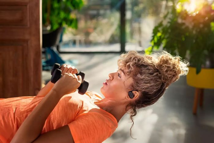 Ці справді бездротові спортивні навушники мають знімні кріплення-гачки для надзвичайно надійної посадки. Бадьора музика дозволяє зосередитися, а вбудований пульсометр допомагає тренуватися в гармонії з власним тілом.