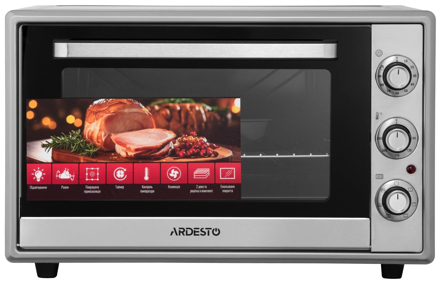 Піч електрична ARDESTO, 60л, 2000Вт, механіч., конвенція, подвійне скло, рожен, сірий