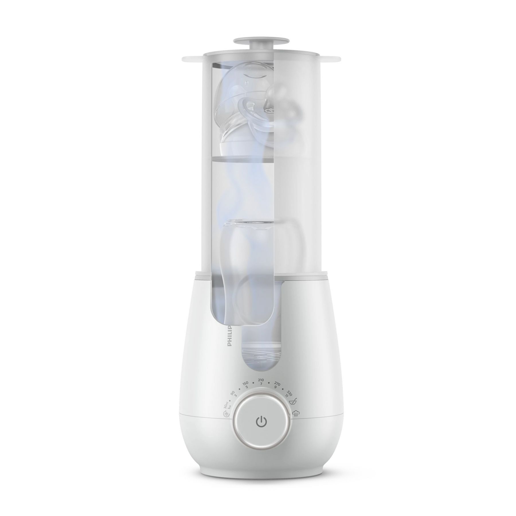 Philips Avent SCF359/00 — електричний підігрівач і стерилізатор 2-в-1, який поєднує швидке підігрівання молока або дитячої їжі та ефективну парову стерилізацію. Технологія водяної бані зберігає поживні речовини, а розумний датчик температури запобігає перегріву. Пристрій знищує до 99,9 % бактерій без хімічних засобів і сумісний із більшістю дитячих пляшечок і баночок.
