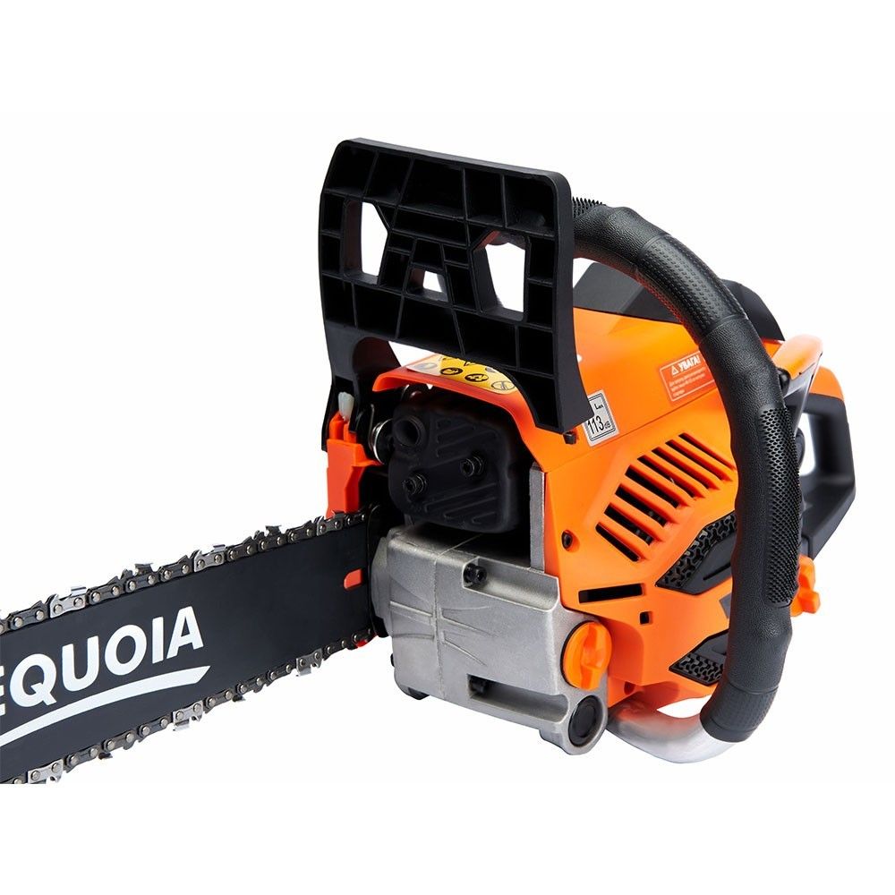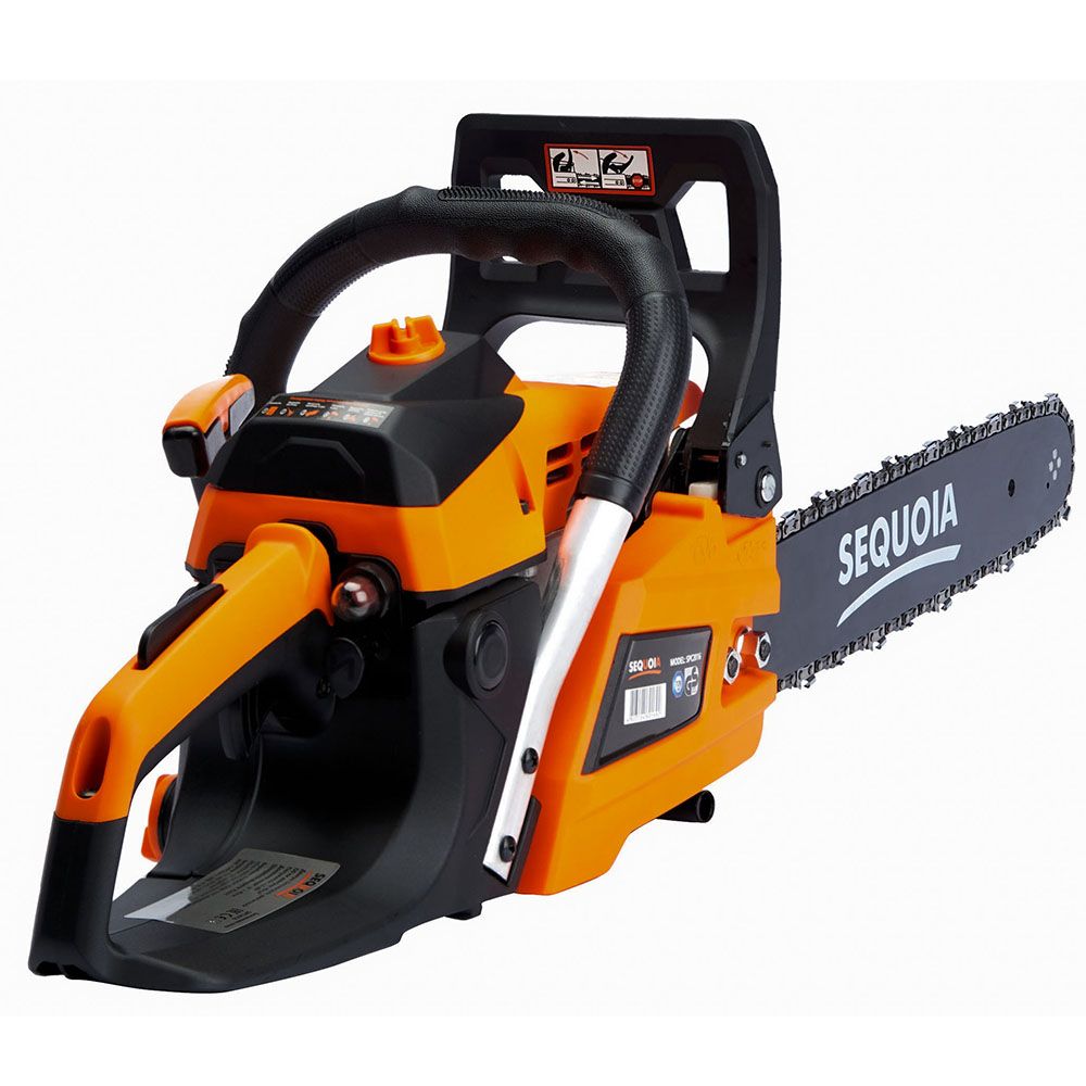 Бензинова ланцюгова пила SEQUOIA SPC2016 оснащена двотактним двигуном об’ємом 40 см³ та потужністю 2 кВт. Шина 40 см з кроком ланцюга 3/8" та швидкістю ланцюга 25 м/с забезпечує ефективний різ деревини середньої твердості. Об’єм паливного бака 0,42 л та масляного 0,24 л дозволяють працювати без частої заправки. Антивібраційна система та автоматична подача мастила підтримують комфорт та довговічність гарнітури. Вага 4,8 кг робить інструмент зручним для тривалого використання.