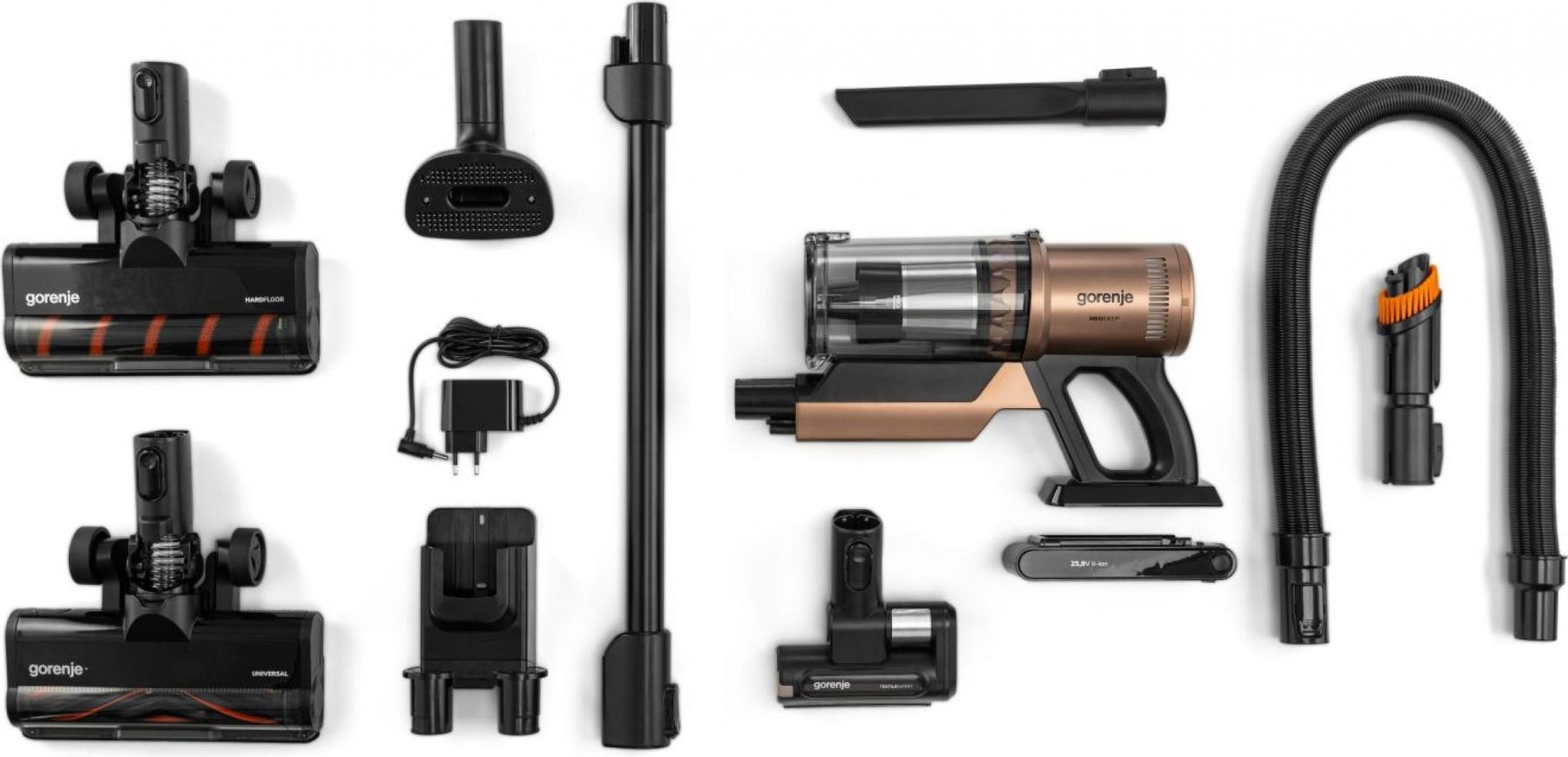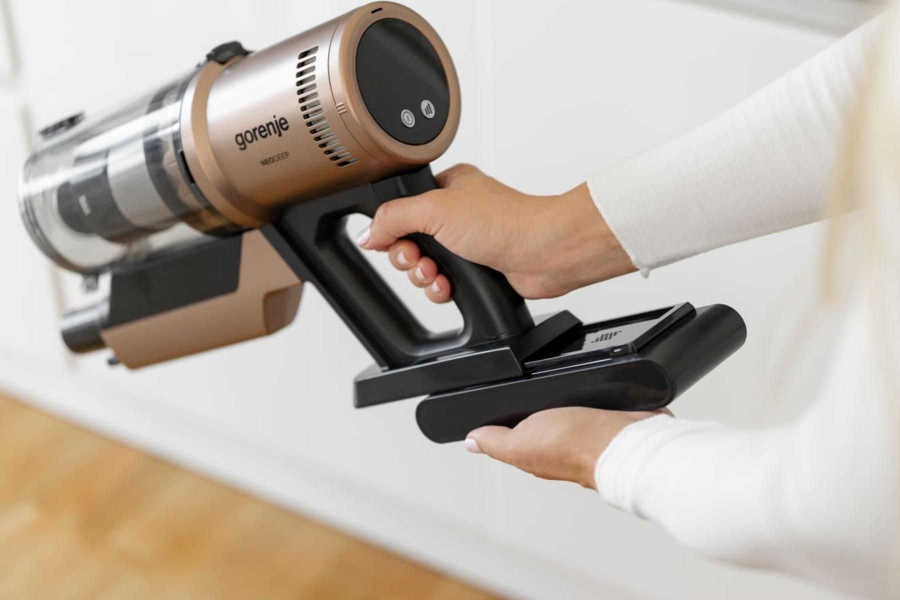 Пилосос Gorenje бездротовий, 125Вт, конт пил -0.6л, автон. робота до 60хв, HEPA, підсвічування, індикатор, турбощітка, бронзовий