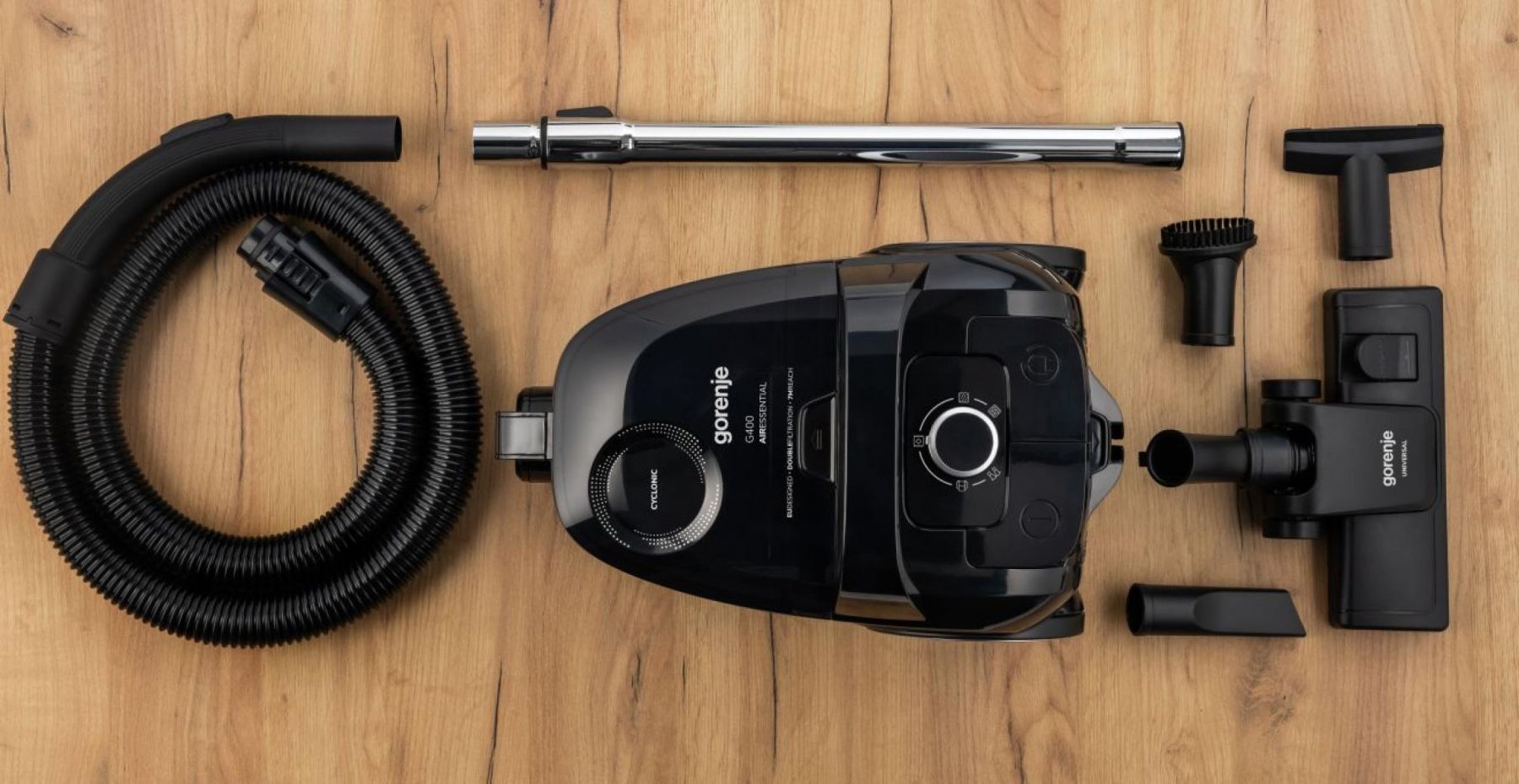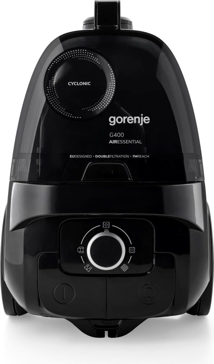 Пилосос Gorenje AIRESSENTIAL оснащений пластиковим контейнером для пилу об’ємом 3,3 л, потужністю 800 Вт і всмоктувальною силою 180 Вт. Має HEPA-фільтр, телескопічну металеву трубку, гнучкий шланг і захист від перегріву. Радіус дії – 7 м, рівень шуму – 76 дБ(А).