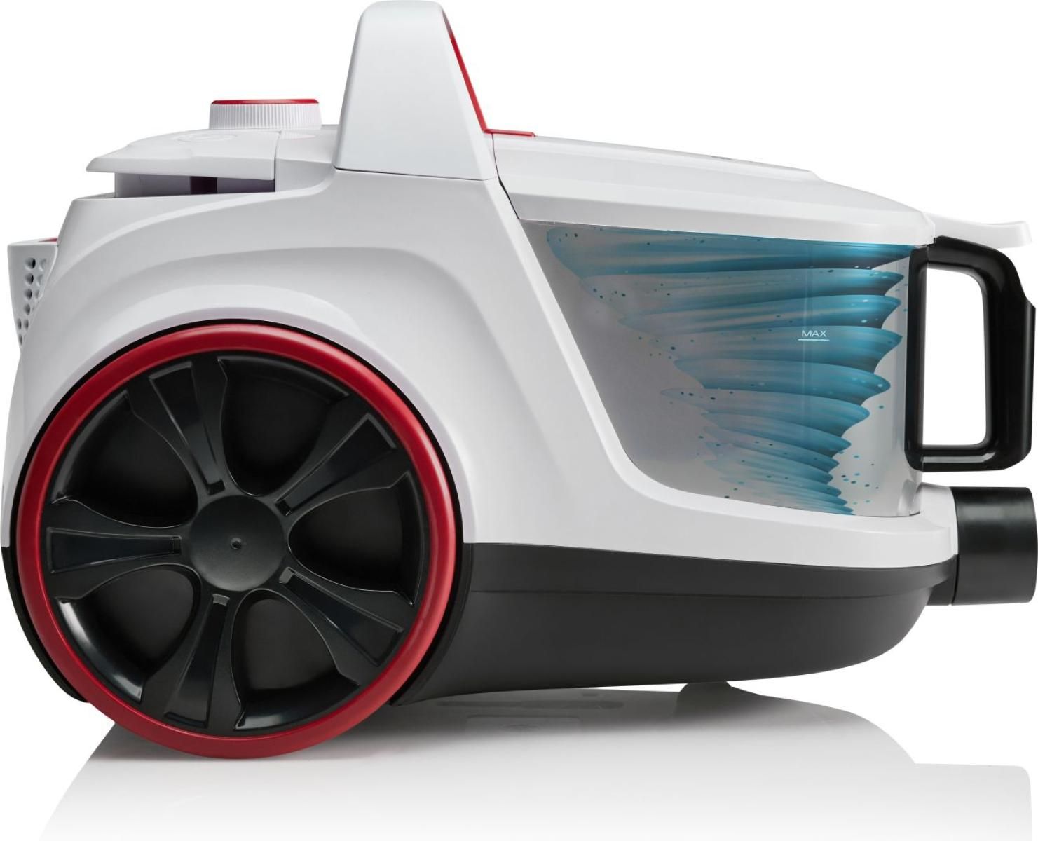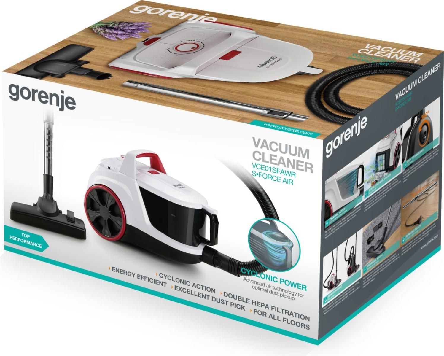 Пилосос Gorenje контейнерний VCE01SFAWR – компактний пристрій із циклонічною технологією, подвійним HEPA-фільтром та контейнером 3,3 л. Телескопічний шланг і 6-метровий шнур забезпечують широкий радіус дії. Маневрові колеса (360°) гарантують легке пересування. Енергоефективний двигун оптимізує продуктивність, а зручне кріплення спрощує зберігання.