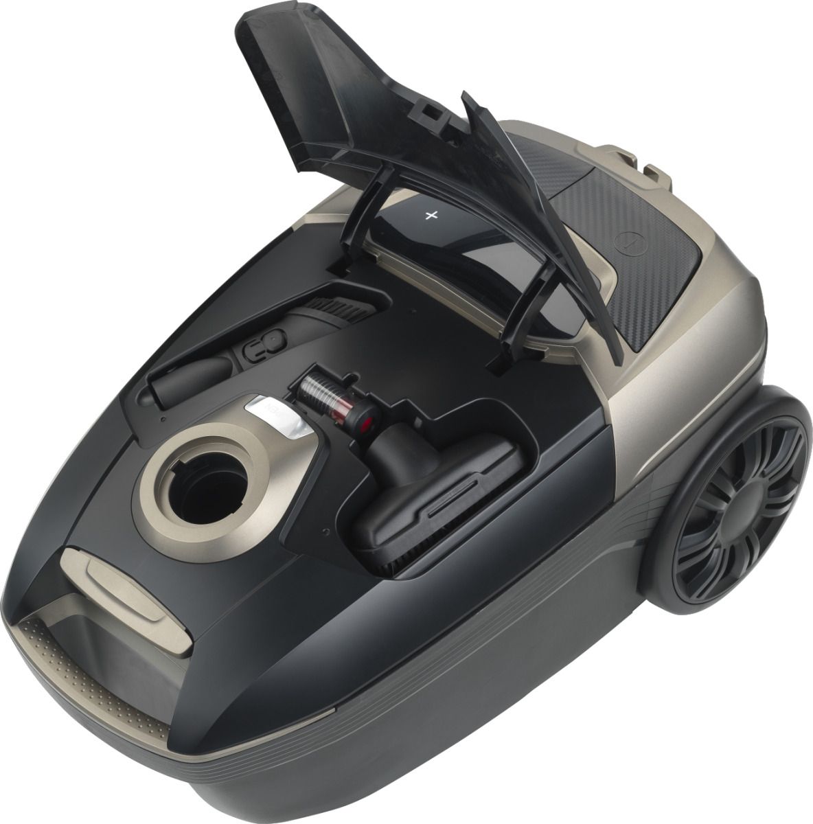 Додатково:LED дисплей, Гумові (м'які) колеса, Захист від всмоктування без мішка, Плавний запуск двигуна, індикатор процесу сушки, Байпасний двигун