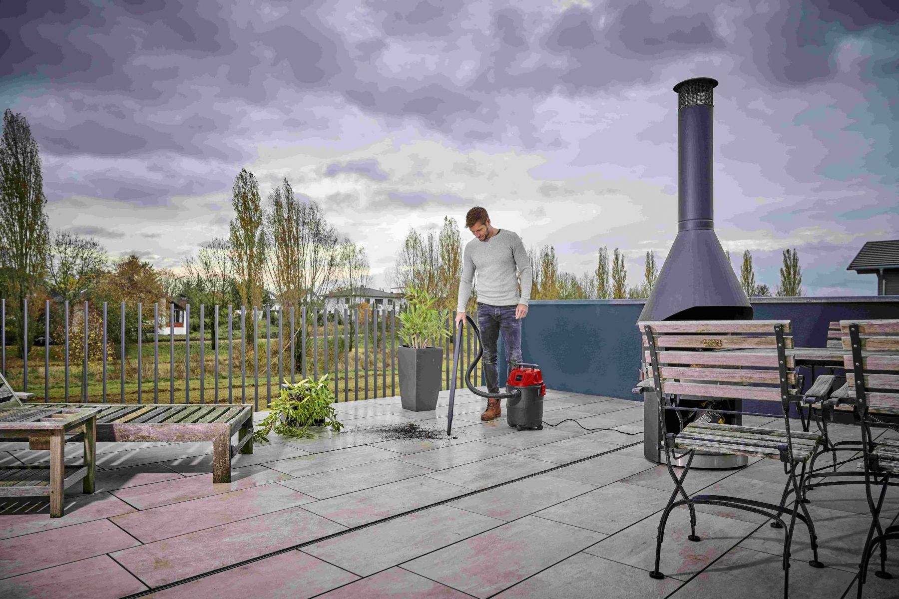 Пилосос для вологого/сухого прибирання Einhell TC-VC 1820 потужністю 1250 Вт підходить для прибирання різних поверхонь і салонів авто. Має міцний 20-літровий бак, шланг 1,5 м Ø36 мм, функцію видування та тримачі для кабелю й аксесуарів. Оснащений зручною кришкою для швидкого спорожнення контейнера.