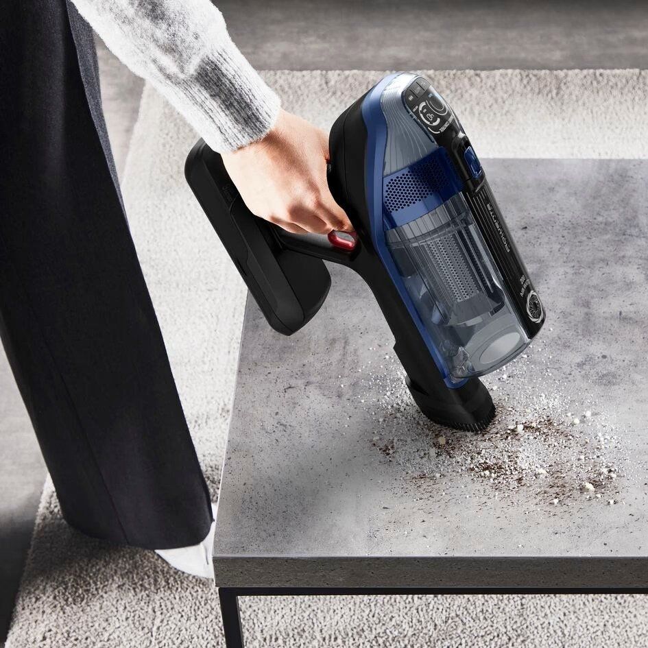 Безпровідний пилосос ROWENTA X-FORCE FLEX 14.60 AQUA DOCKING - це потужний і зручний інструмент для прибирання. Завдяки потужності 200Вт, він забезпечує високу ефективність вологого прибирання. Ємність контейнера для пилу становить 0,9 літра, а автономна робота досягає 70 хвилин, що забезпечує продуктивне прибирання без зайвих перерв. Система HEF забезпечує ефективне збирання пилу і алергенів на рівні 99,9%. Дизайн у чорно-синій кольоровій гамі надає пилососу стильний вигляд.
