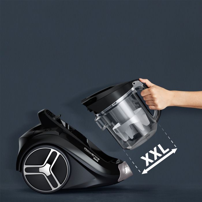 Безмішковий пилосос Rowenta Compact Power XXL, маючи двигун з низьким енергоспоживанням потужністю 900 Вт та зручний компактний дизайн, забезпечує чудові результати прибирання. Його передова 3-рівнева фільтрація вловлює понад 99,98% частинок пилу для забезпечення чистоти повітря вдома. Контейнер для пилу XXL об’ємом 2,5 л ідеально підходить для різноманітних житлових приміщень, пропонуючи більшу автономність і легкий процес очистки контейнера від пилу.