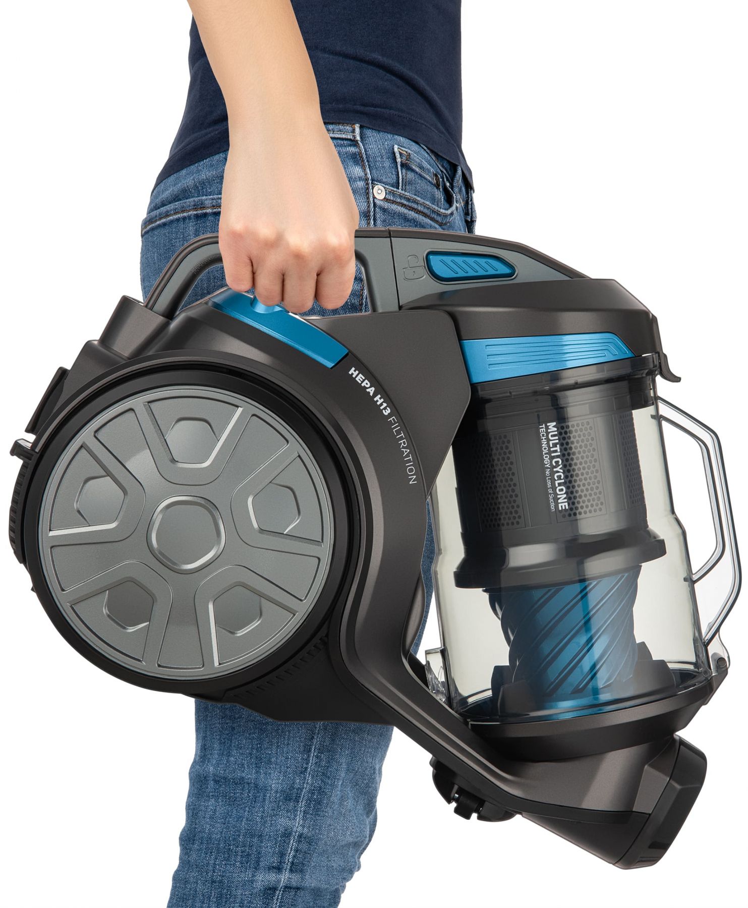 Контейнерний пилосос потужністю 700 Вт - ефективний засіб для прибирання з інноваційною технологією фільтрації НЕРА. Об'єм контейнера для пилу складає 3,5 літра, що забезпечує тривалий період роботи без необхідності частого очищення. Чорно-синій дизайн надає йому стильний вигляд, а висока потужність робить його надійним союзником у боротьбі з пилом у будь-якому приміщенні.