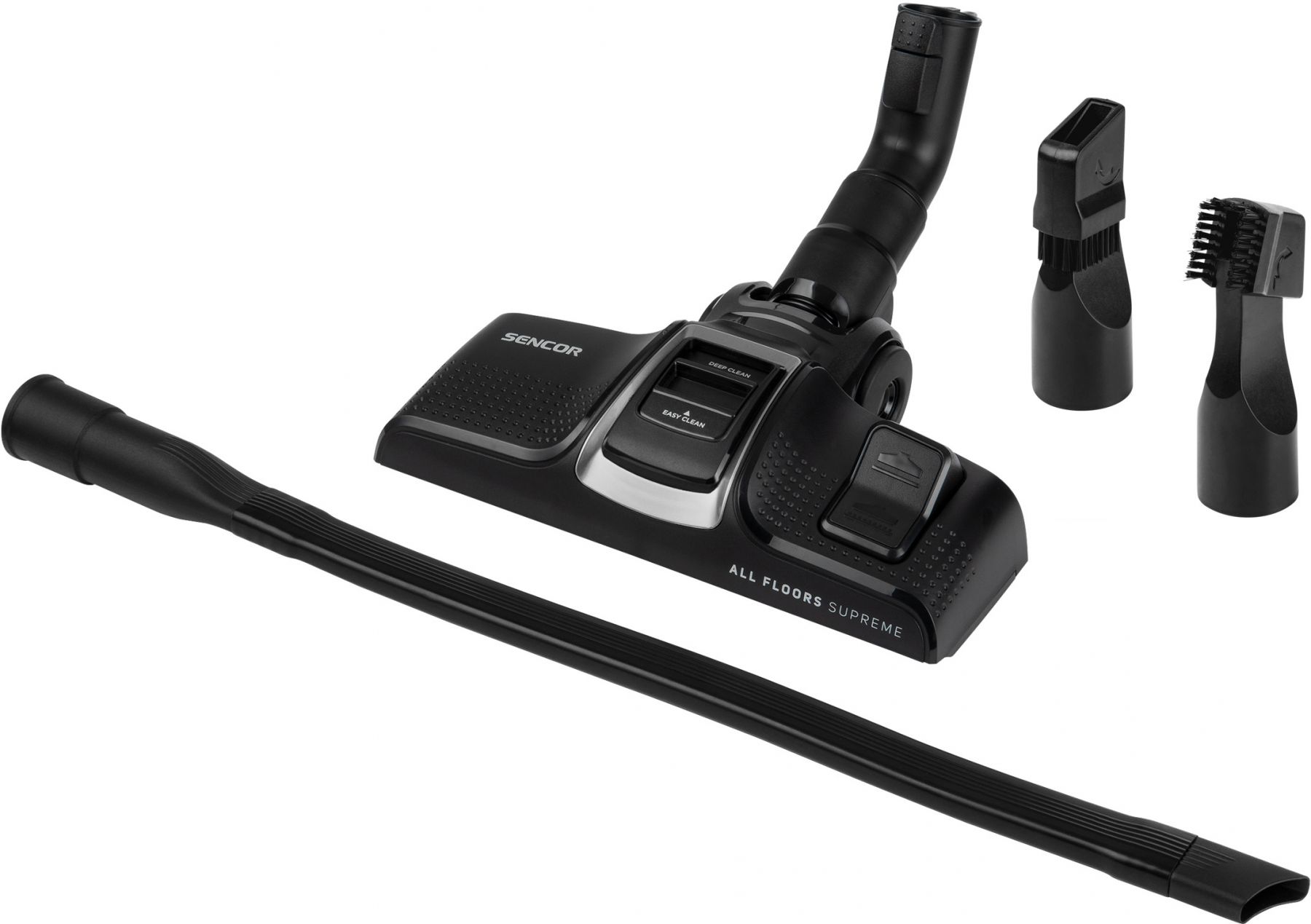 Комплектація:щілинна насадка, турбощітка, міні-насадка, насадка для твердих покриттів, комбінована насадка, довга гнучка щілинна насадка, щітка для пилу