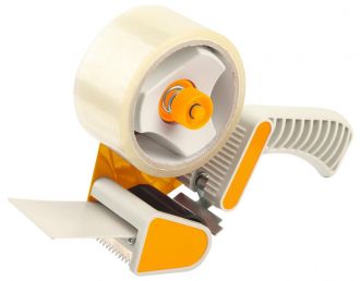 Пакувальний пістолет представляє собою спеціальне пристосування, призначене для швидкого і надійного наклеювання клейкої стрічки. Пристрій використовується на складах і пошті, в логістичних компаніях і магазинах. Пістолет виготовлений з поліпропілену. Модель підходить для клейкої стрічки шириною ≤ 50 мм з діаметром котушки 76 мм. В набір входить рулон клейкої стрічки (зовнішній діаметр 115 мм).