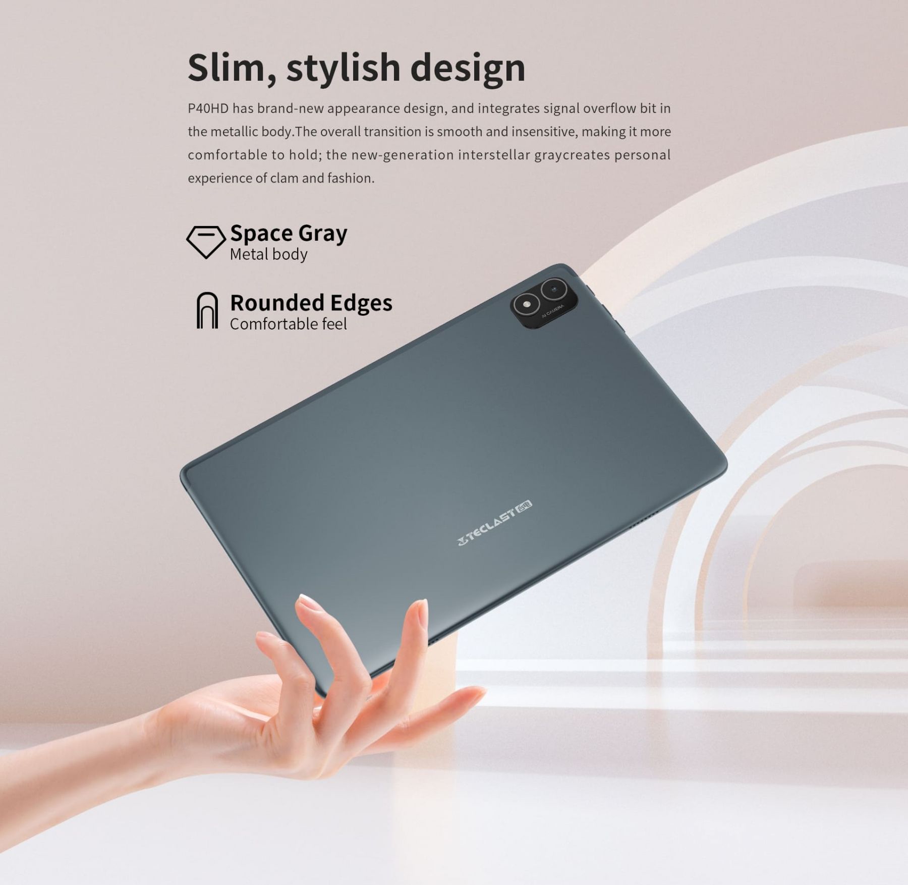 Teclast P40HD - оновлена модель 3 кварталу 2023, з ще більшим об’ємом оперативної пам’яті, покращеною камерою і свіжим дизайном. На відміну від моделі початку 2023 року, Teclast P40HD отримав 8ГБ оперативної пам'яті, яка може бути розширена додатковими 8ГБ віртуальноъ пам'яті, покращений блок камер (13Мп основна з автофокусом і світлодіодним спалахом, і 5Мп фронтальна). Звісно що планшет отримав ще одне значне оновлення - останню версію Android 13.