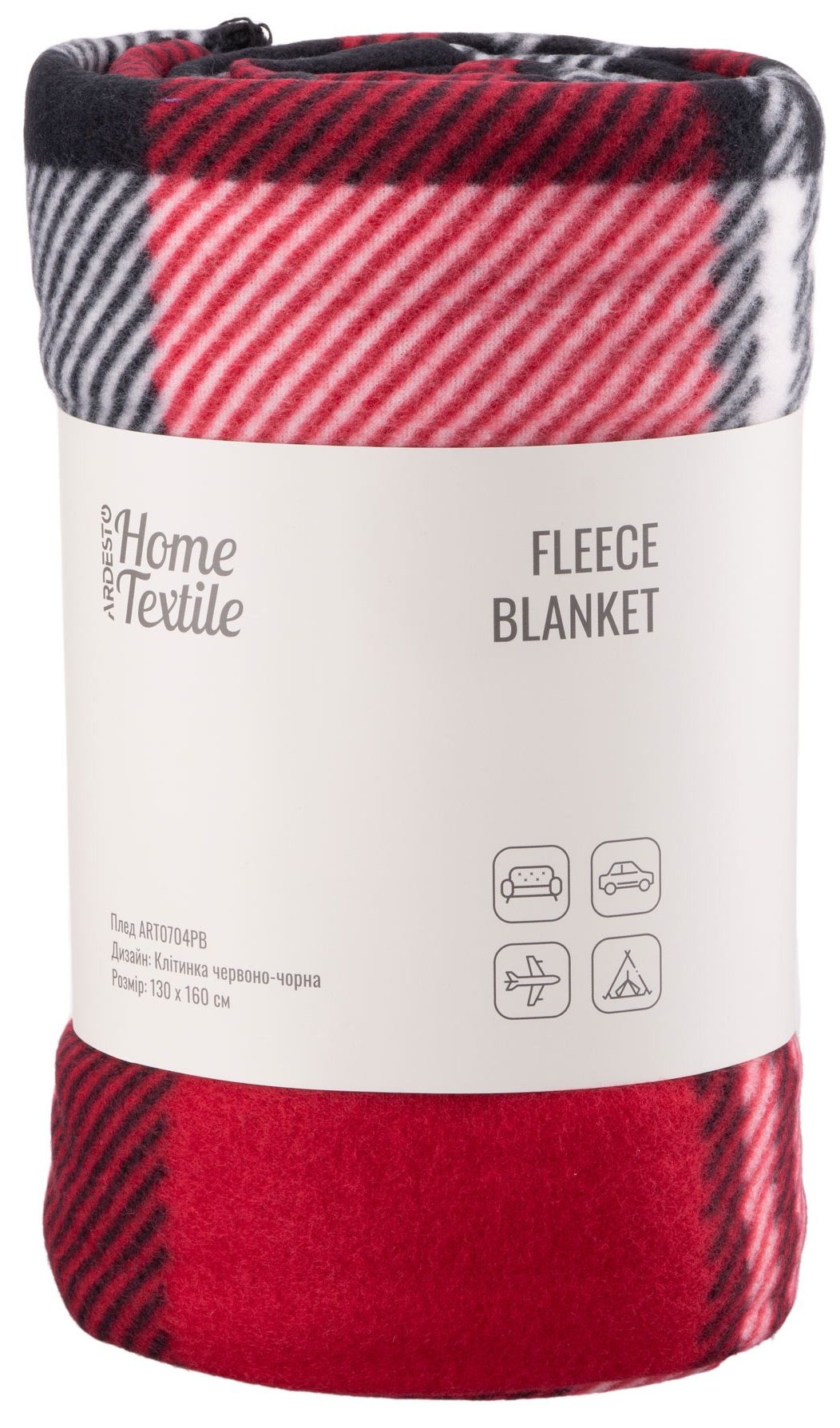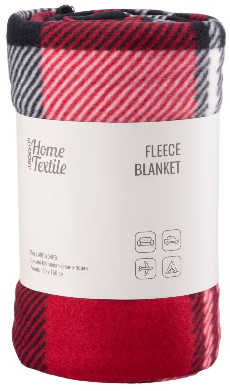Плед Ardesto Fleece, 130x160 см, 100% поліестер, клітинка червоно-чорна