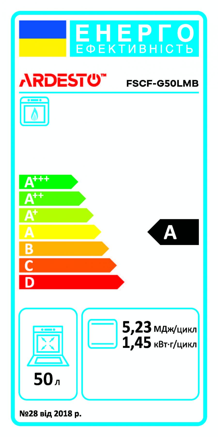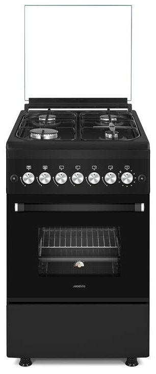 Плита Ardesto газова, 50л, 50x60см, скляна кришка, електропідпал, таймер, термометр, каво адаптер, форсунки LPG (підключення газового балона), чорний