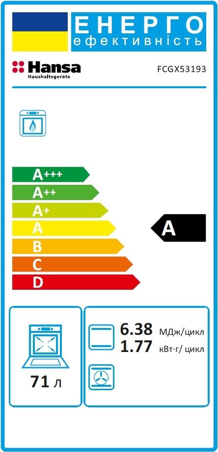 Плита газова Hansa, 50х60см, 71л, чавун, газ контр., нержавіюча сталь