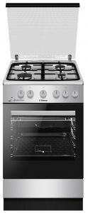 Газова плита Hansa FCGX53193 з нержавіючої сталі з чавунними решітками, 4 конфорками та електрозапалюванням у ручках. Духовка об’ємом 71 л оснащена нижнім газовим нагрівом, грилем, підсвіткою та глибоким деком у комплекті.
