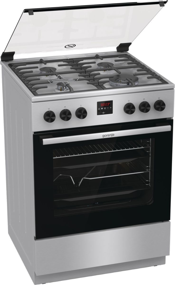 Плита Gorenje газова, 64л, 60x60см, дисплей, чавун, нерж